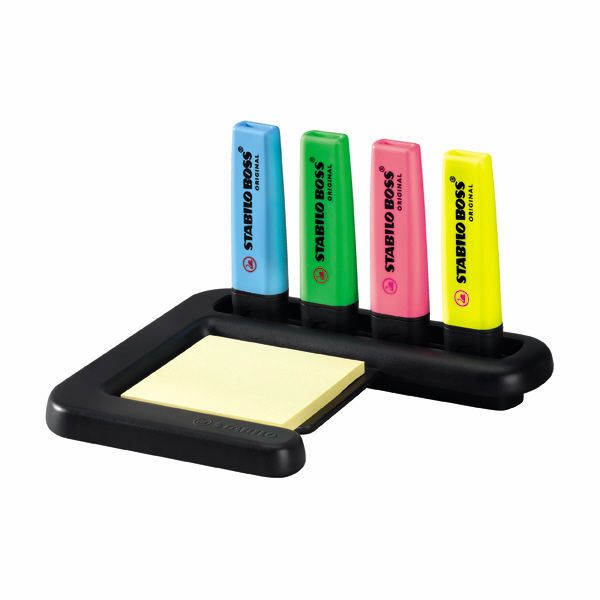 - Highlighter Stabilo Boss Desk Set (inc Post it notes, 4 multicolor Highlighters and stand) Highlighter Stabilo Boss Desk Set (inc Post it notes, 4 multicolor Highlighters and stand)
